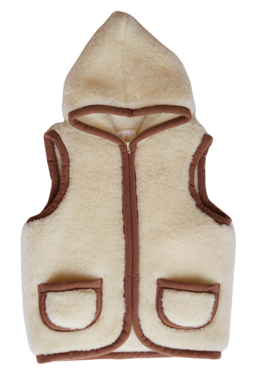 UitverkochtWollen bodywarmer – Flat White met capuchon