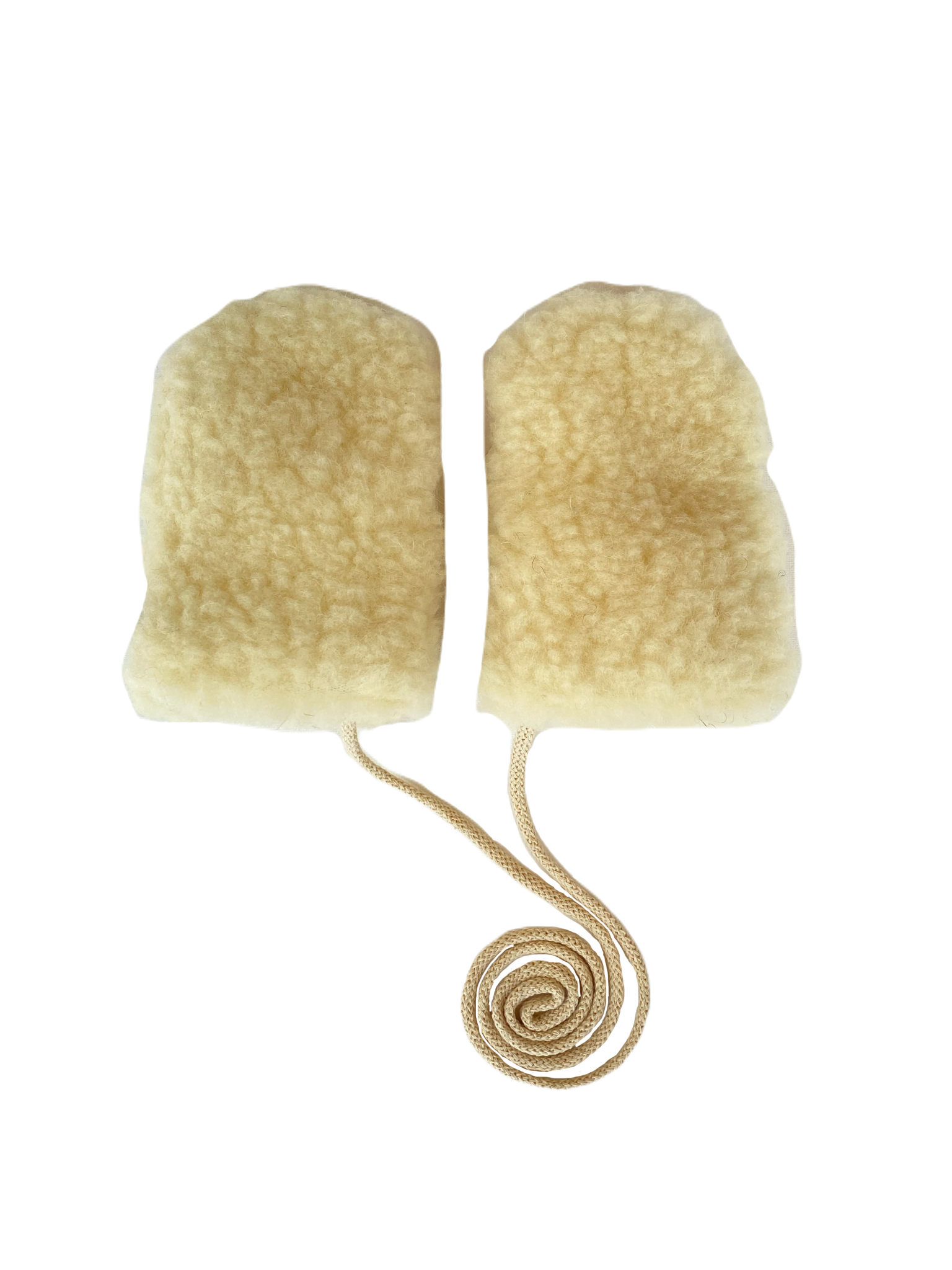 De wantjes zitten aan elkaar vast met een koord. Blijf dus altijd onder toezicht als je kindje de wantjes draagt en en de wantjes zijn geen speelgoed. Grondstof: 100% schapenwol